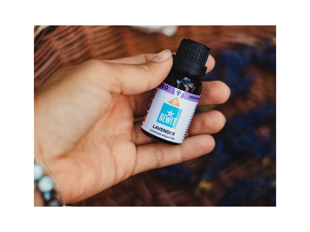 BEWIT Eterično ulje lavande stimulira osjetila i blagotvorno djeluje na emocije, opuštanje, otklanja napetost, stres i nesanicu. Eterično ulje lavande također se naziva najsvestranijim od svih eteričnih ulja. Također pruža nježnu njegu kože.