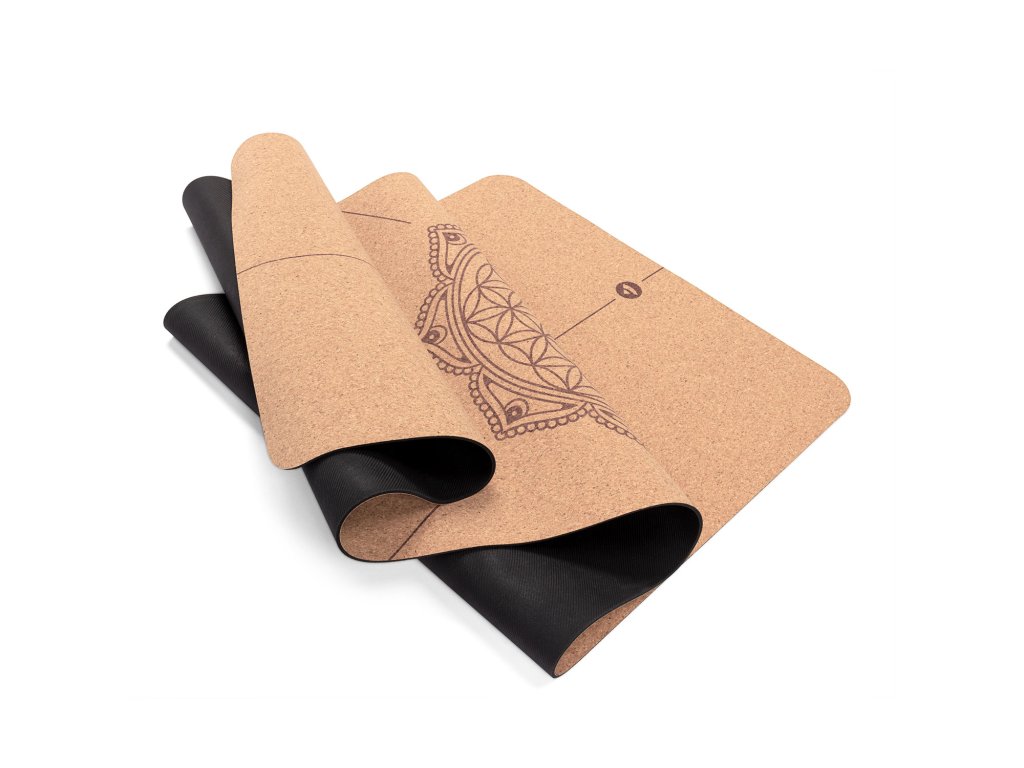 Bodhi Cork prostirka s dizajnom Mandala. Prekrasan print Mandala nije samo u dekorativne svrhe, već se može koristiti i kao praktična pomoć za poravnavanje vježbi. Prostirka ima 100% plutu na vrhu i 100% prirodni kaučuk na dnu, što ga čvrsto drži na podlozi i ne klizi.