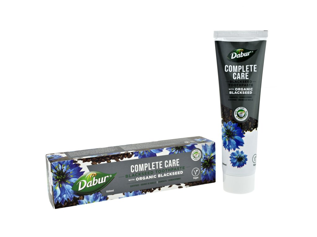 Dabur organska pasta za zube s crnim kuminom prirodna je pasta obogaćena organskim crnim kuminom (Nigella), aktivnim ugljenom i uljem čajevca. Osigurava potpunu njegu zuba i desni, osvježava dah i pridonosi očuvanju prirodne bjeline osmijeha.
