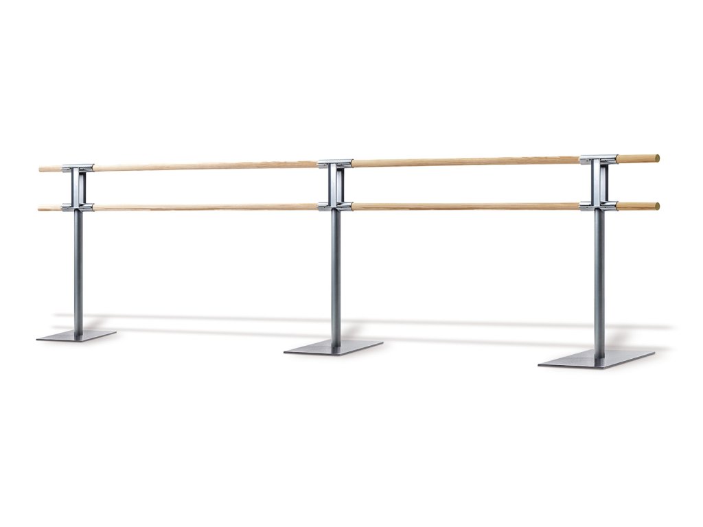 Ovaj model omogućuje istovremeno korištenje obje šipke i nudi izvrsnu bočnu stabilnost čak i s dužom drvenom šipkom zahvaljujući opcionalnom korištenju 3 nosača. Izvrstan izbor za grupne treninge ili intenzivne vježbe s šipkom.