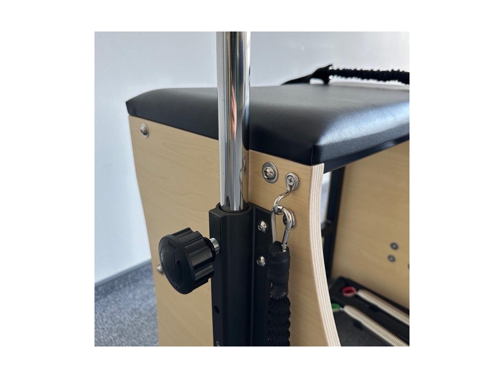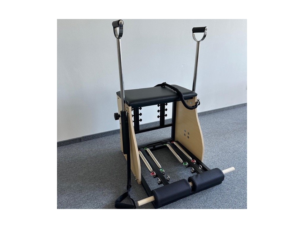 Combo stolica je svestrana oprema dizajnirana za sveobuhvatni Pilates trening. Zahvaljujući svojoj čvrstoj drvenoj konstrukciji, sustavu opruga s obrnutim otporom i ergonomski podstavljenim osloncima za noge, nudi širok raspon mogućnosti vježbanja - od jačanja do istezanja i rehabilitacije.