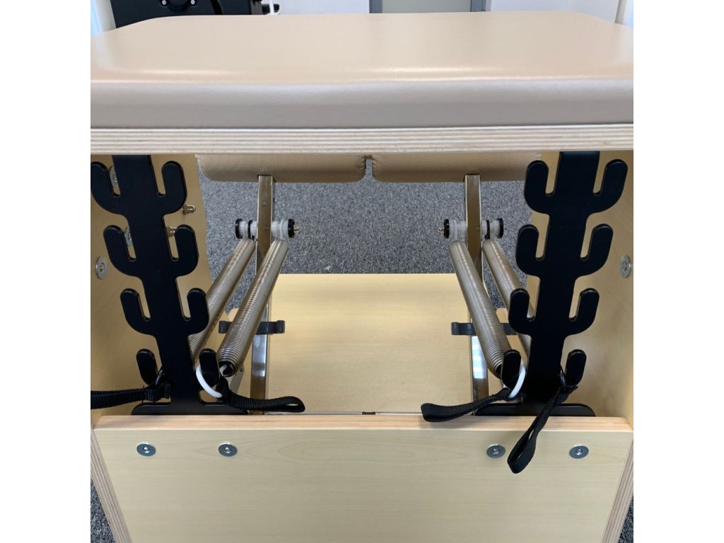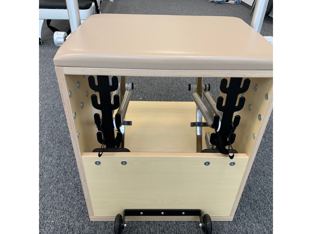 Combo stolica višenamjenska je sprava namijenjena potpunom Pilates treningu. Zahvaljujući čvrstoj drvenoj konstrukciji, opružnom sustavu s obrnutim otporom i udobnim, ergonomski podstavljenim osloncima za noge, omogućuje širok spektar vježbi – od jačanja mišića i istezanja do podrške u rehabilitaciji.