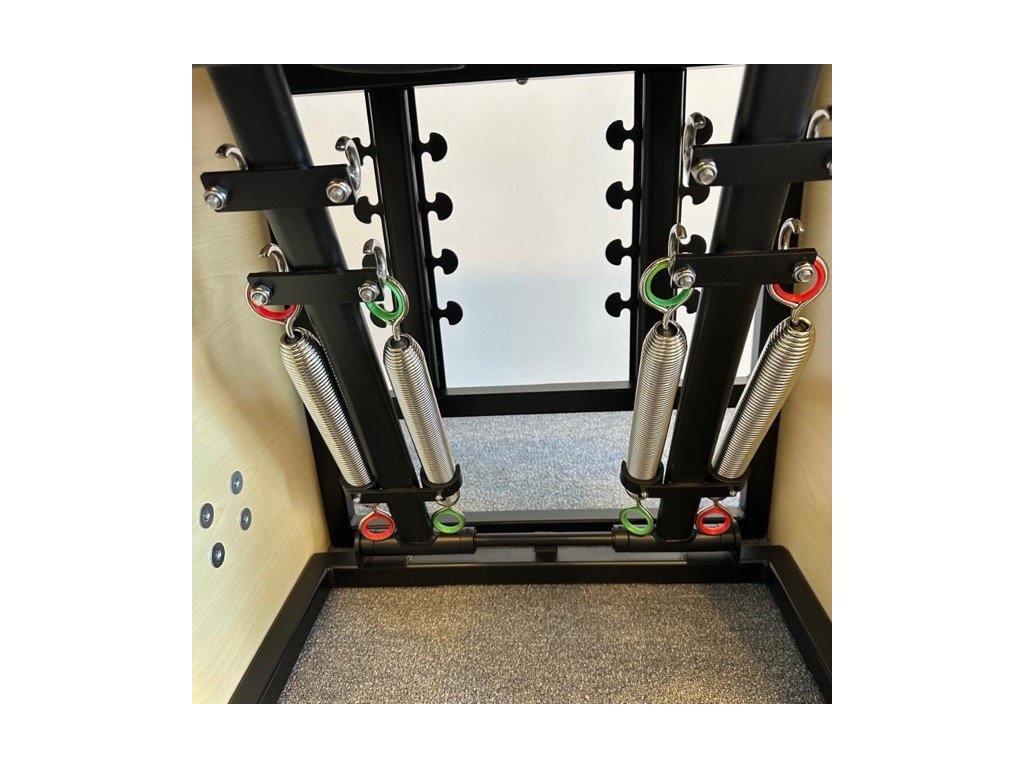 Innwell Pilates Combo stolica je profesionalna Pilates stolica dizajnirana za trening snage, istezanje i rehabilitaciju. Zahvaljujući stabilnoj drvenoj konstrukciji, podesivim oprugama i ergonomskim detaljima, pruža siguran i prilagodljiv trening.