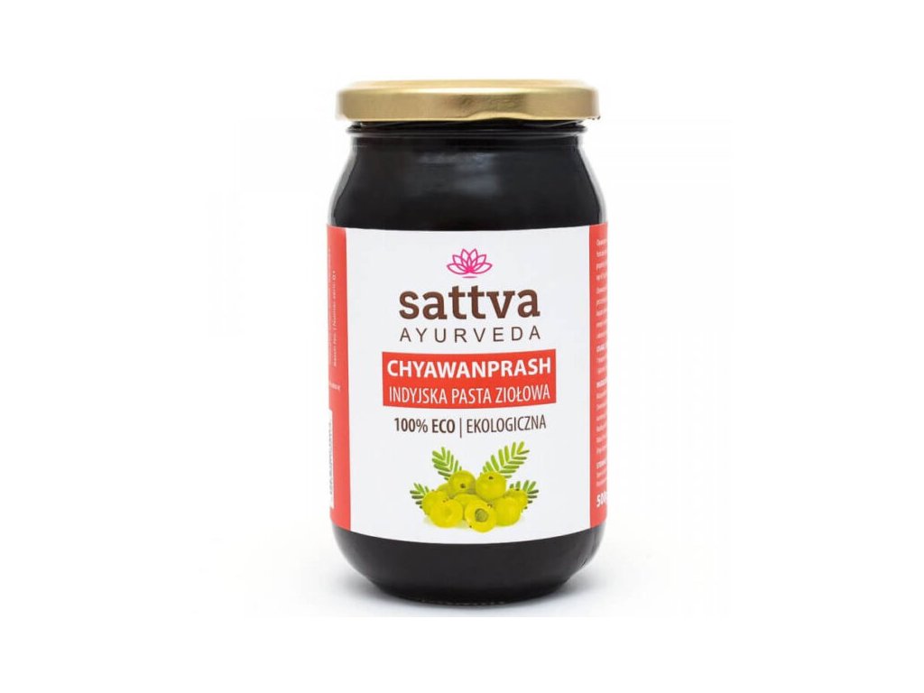 Sattva Ayurveda Chyavanprash pasta napravljena je prema originalnom receptu preuzetom iz klasične Ajurvede, sadrži samo potpuno zrele plodove Amle, vrijedan bambusov proizvod Vanshlochan i veliki broj visokokvalitetnih, prirodnih biljaka, voća, korijenja i začina, pažljivo prikupljenih iz najbolje i najoriginalnije himalajske regije i druge dijelove Indije. Ima vrlo delikatan i uravnotežen okus.